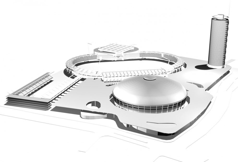 Sport- und Freizeitcenter Olvenstedter Platz, Magdeburg, Planung (NGM), 1.Preis für Städtebau 3°Architekturbienale São Paulo