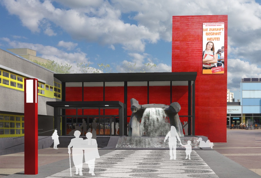 Kulturzentrum Fontane-Haus im Märkischen Viertel Berlin, Stadtraumgestaltung, Umbau/Anbau des Eingangsgebäudes