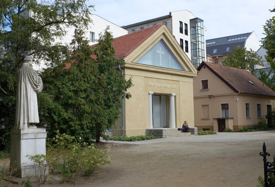 Trauerkapelle auf dem Dorotheenstädtischen Friedhof, Berlin-Mitte, mit James Turrell / Lichtkunst, 1. Preis KIBa